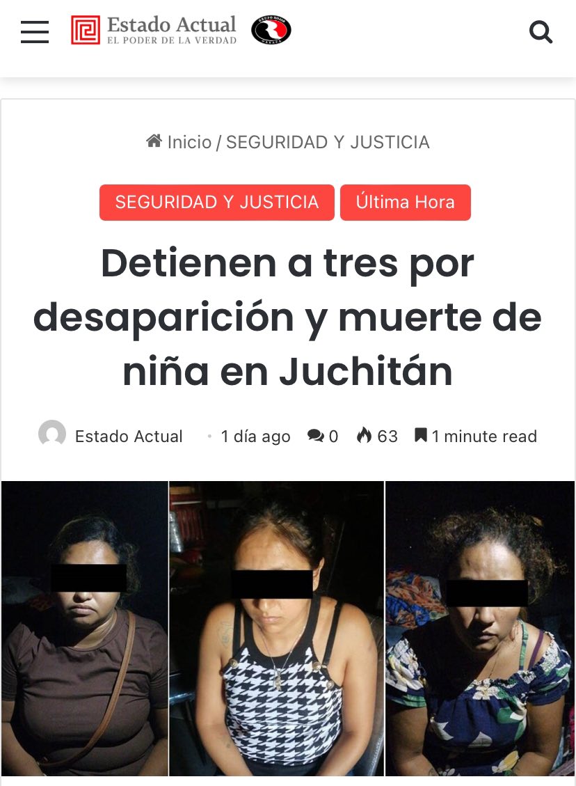 La Fiscalía de Justicia de Oaxaca #FJEO ha presentado ya tres posibles responsables del secuestro y asesinato de la nena #NoeliaDailetS.G, una mujer del #EDOMEX y una más de #Chiapas, además de otra no identificada y relatan el periplo que los llevó a la detención de estas tres personas, pero ¿Y?, es decir ¿cuándo van a garantizar la seguridad de las familias y sobre todo de los infantes y en general de los ciudadanos de #Oaxaca?